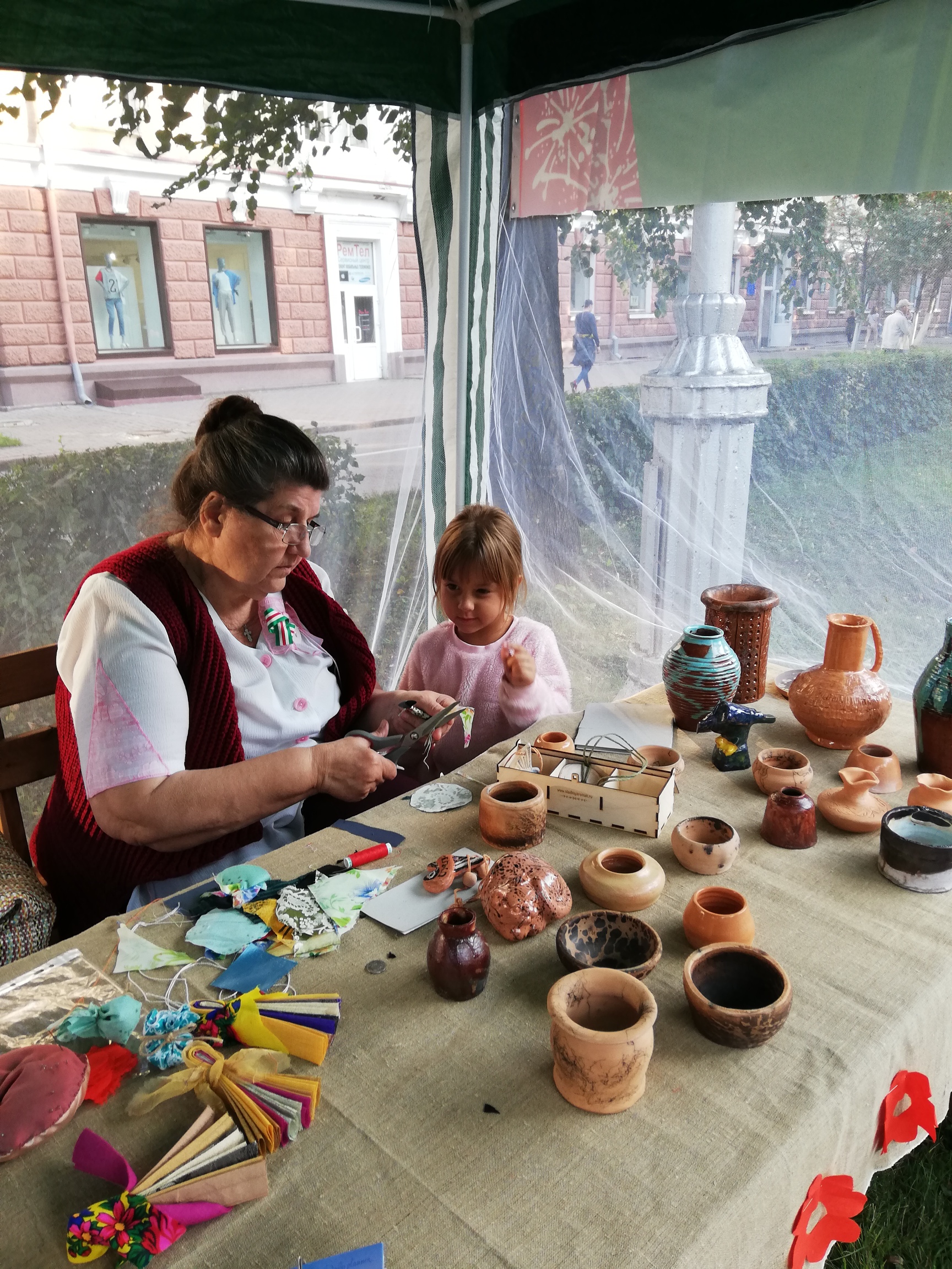 На выставке «Художественная керамика», которая состоялась на улице Весенней «Кемеровский Арбат – территория творчества», были представлены студенческие работы: анималистические фигурки животных, декоративные кувшины, вазочки, тарелки, женские украшения и многое другое. Жители города приняли участие в мастер-классе по изготовлению тряпичных кукол-оберегов, который проводила лаборант декоративно-прикладного отделения Галина Васильевна Шалыгина. Не обошлось без подарков детям города Кемерово. Куклы-обереги «Сорока» нашли свой дом среди жителей и гостей шахтерской столицы.