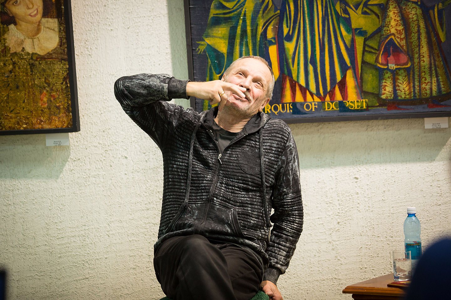 Встреча больше напоминала дружескую беседу: художник шутил, улыбался, отвечал на вопросы коллег и будущих артистов театра. Задушевность вечера не обошлась без воспоминаний и, конечно, романсов в исполнении преподавателя колледжа С.П.Тарханова.